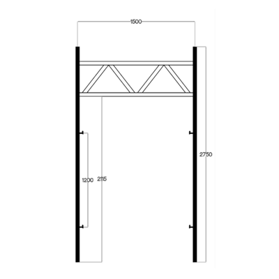 Cadre de passage. Poids du cadre : 33kg. Dimensions : 2,7x1,5m.