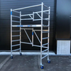 Son format pliant 75 x 190 cm constitue un véritable avantage : l’échafaudage passe à travers une porte sans démontage, ce qui facilite grandement les déplacements en intérieur comme en extérieur. Léger, compact et facile à transporter, il se monte rapidement sans outillage complexe.
