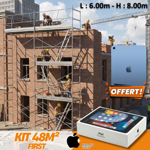 Optez pour notre kit échafaudage de 48m² en acier classe 4 et réalisez vos travaux en toute confiance.